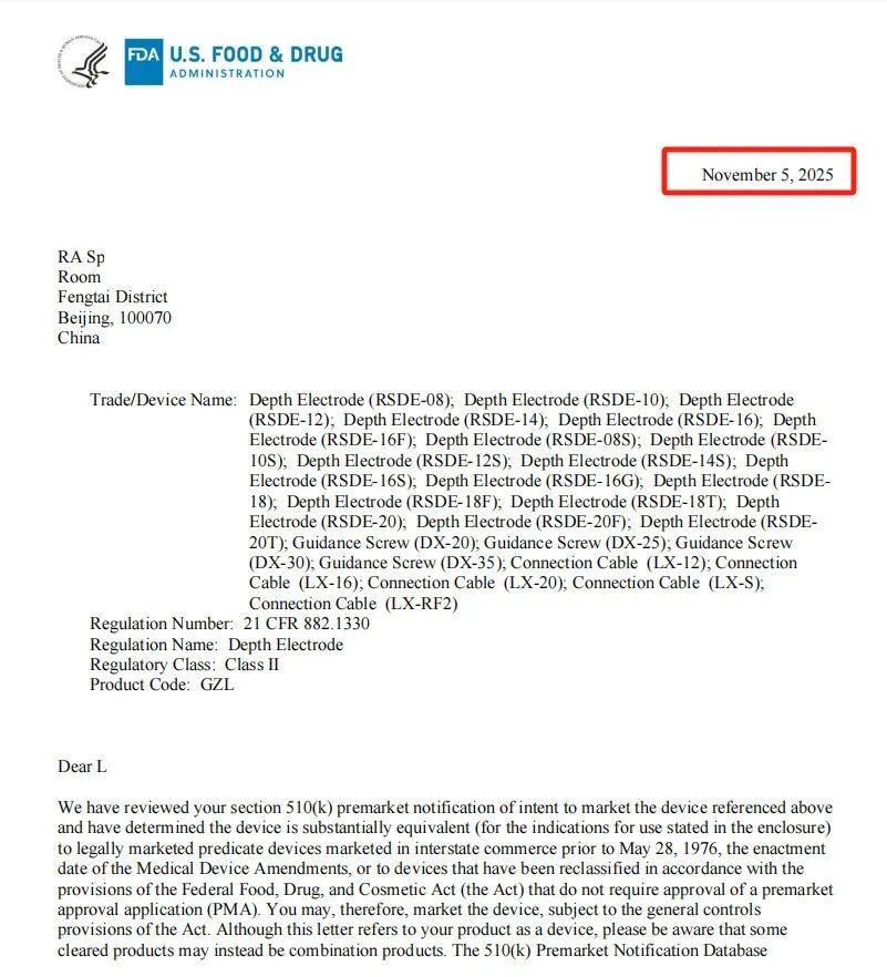 近日,挪亚泰尔成功助力颅内深部电极产品完成化学表征及毒理学风险评估,顺利通过FDA 510(k)申报。针对产品特性与技术难点,挪亚泰尔技术团队提供全流程保质保量的技术攻坚服务,在有限时间内精准突破关键审批节点,又一次帮助企业完成对FDA 510(k)的高质高速攻克。